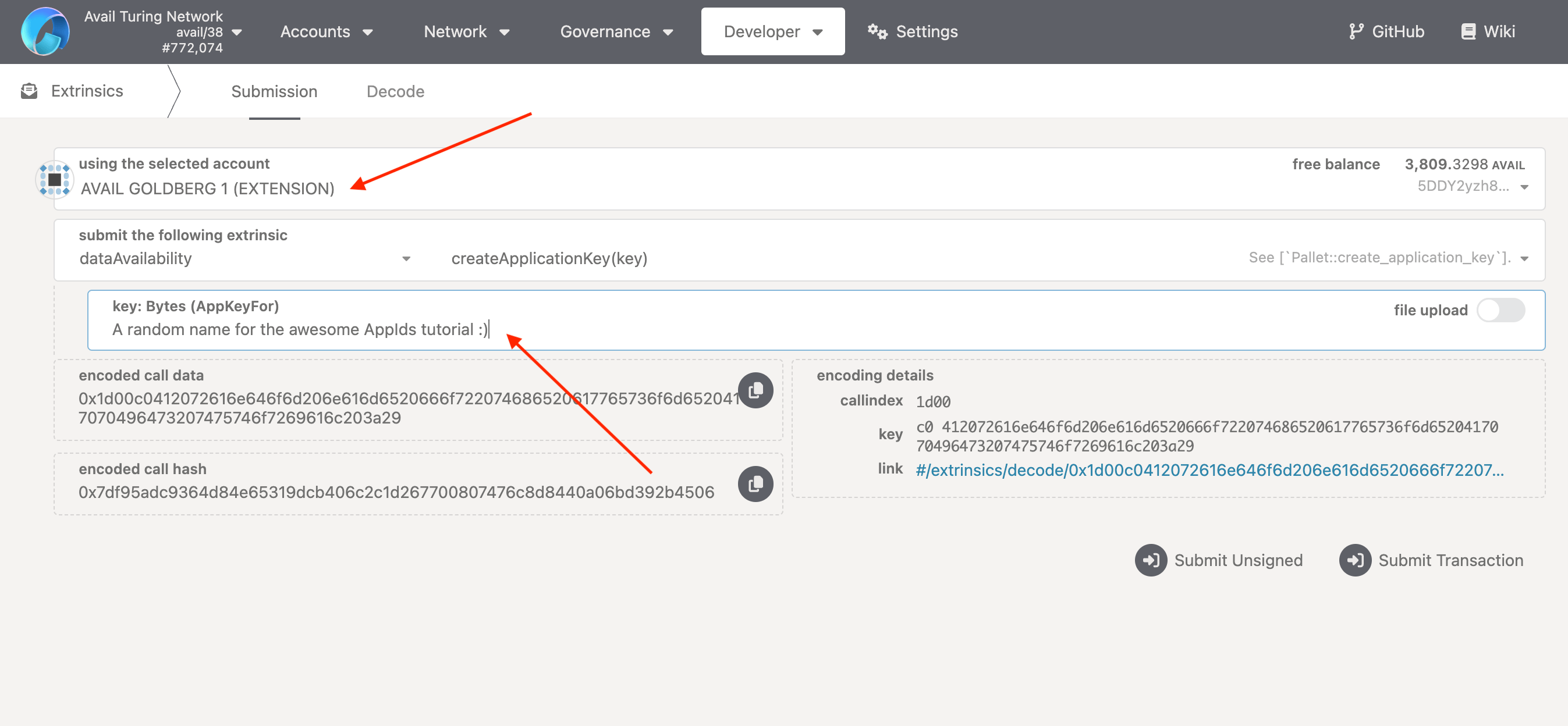 AppIDthat you want to submit the data to. Click onSign and Submitto authorize the transaction through your wallet.