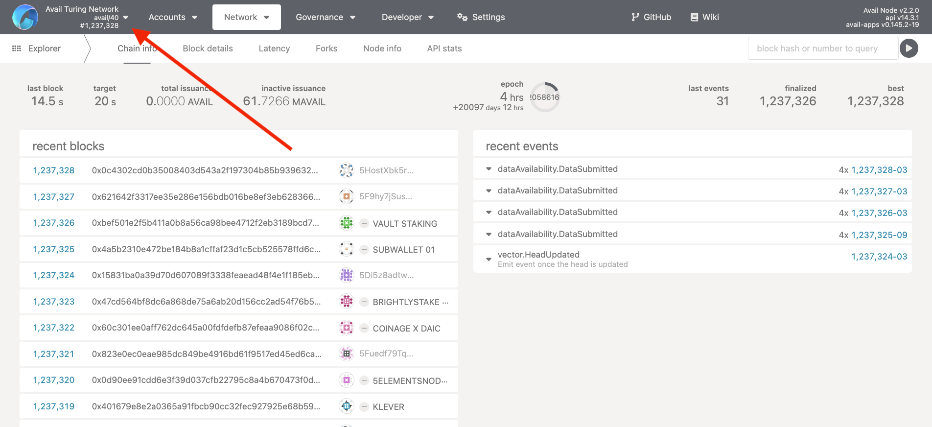 The Avail network has two main explorers that can be used to browse the network: