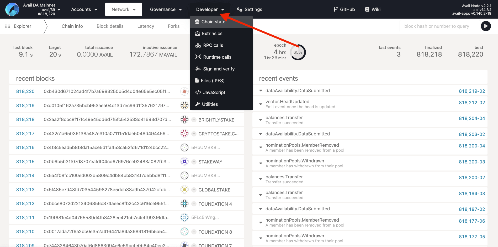 - Avail Apps explorer : A dev-focussed explorer with powerful tools to work with the network.