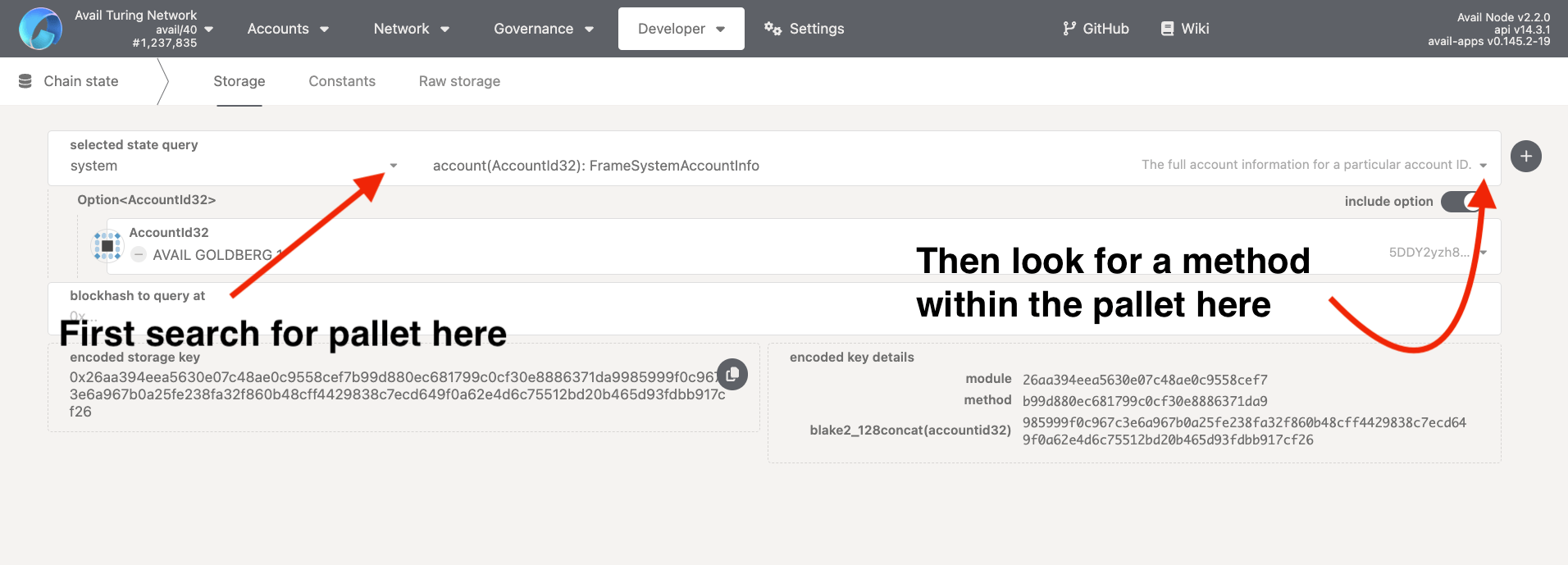 AvailAppsexplorer to query the balance of an account on the Avail network. You can query other methods in a similar way.