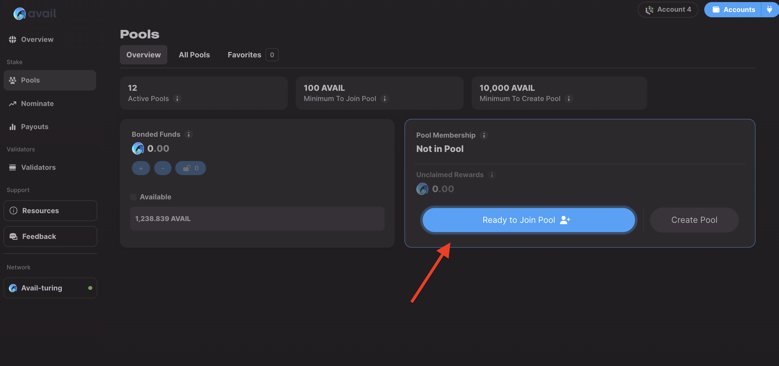 There you can check out a list of all available pools on Avail DA and join the one that you want.